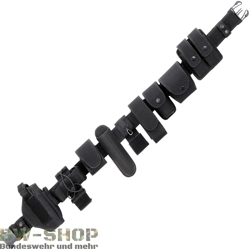 Hochwertige Security Koppel aus Nylon 1000D Material und PP-Einlage. Mit diesem All-in-one Paket haben Sie ein umfangreiches Koppelsystem mit insgesamt 12 Teilen. Alle notwendigen Taschen für einen perfekten Einsatz sind an diesem Koppelsystem gegeben. Unter anderem finden Sie Pistolenholster, Handschellentasche, Funkgerätetasche, Magazintaschen und diverse andere Taschen in unterschiedlichen Formaten, die Sie alle abnehmen oder individuell verstellen können.